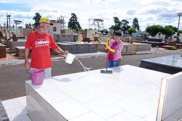 Em Arapongas, a expectativa é de pelo menos 10 mil pessoas visitando o Cemitério Municipal, de acordo com o gerente administrativo do local, Olívio Garbim. “As melhorias não pararam durante todo o ano. Atualmente, estamos intensificando sobretudo a pintura das vias e outros cuidados básicos para receber a população”. Ele lembra ainda que vasos que retém água não são permitidos. A prefeitura fez inclusive a retirada desses recipientes em todo o cemitério. “Pedimos que as pessoas não levem flores artificiais, apenas naturais, e sempre tenham cuidado com os recipientes, para que não se transformem em criadouros do mosquito Aedes aegypti”, ressalta ele. Ontem, dezenas de pessoas estiveram nos cemitérios para lavar os túmulos de seus entes queridos. Um deles é o vigilante apucaranense Ruan Navarro, que lavou os túmulos dos pais, avós e bisavós. “É o carinho que fica. Eles já se foram, então essa é uma forma de manter a lembrança viva. É o que podemos fazer por eles”, afirma. O período também serve para a doméstica Benedita Lachoski conseguir uma renda extra. Ela lava seis túmulos no Cemitério Cristo Rei, fora o da própria família. “Sempre tento cuidar dos túmulos com carinho e respeito, deixando tudo bem limpo e organizado para as famílias. Assim, eu consigo tirar um dinheirinho”, diz. O prazo para realizar o serviço de lavagem de túmulos, tanto em Apucarana quanto em Arapongas, acaba na próxima segunda-feira (31).