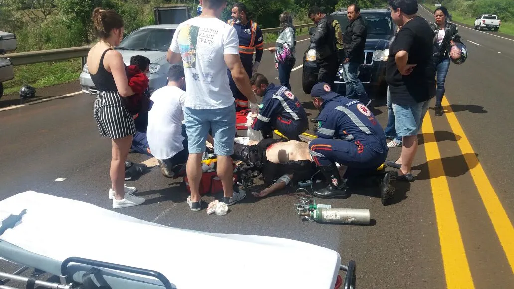 Um homem ficou ferido após sofrer uma queda de moto na tarde deste domingo (06) na PR-444 entre Arapongas e Mandaguari. A vítima é do Estado de São Paulo e estava a passeio na região.