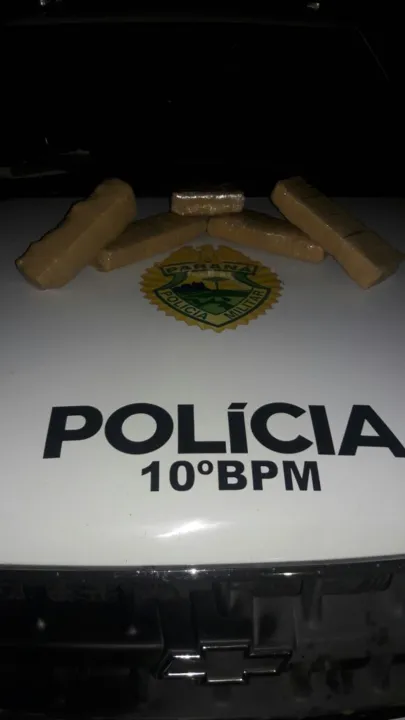 Durante revista pessoal, os policiais encontraram cinco tabletes de maconha dentro de uma mochila. "Efetuamos abordagem no veículo e localizamos a droga', reiterou o sargento.