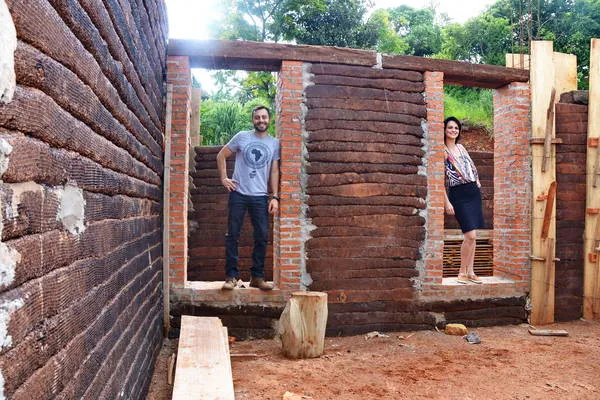 O sonho da casa própria dos cabeleireiros Hudson Marques Faria, 38 anos, e Érica Villa Marques Faria, 41, é um pouco diferente. Procurando uma opção mais barata e mais ecológica, o casal optou por trocar a mistura de tijolo e cimento por terra. A casa de 260 m² que eles estão construindo em Jandaia do Sul tem as paredes feitas de barro em um projeto que está chamando atenção. Hudson diz que já viu construções parecidas pela internet, em países como Estados Unidos e Colômbia.