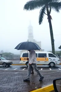 No domingo (09), o clima mantém as mesmas características, mas as chuvas devem surgir mais no período noturno. Durante a tarde o sol pode aparecer, mesmo que de forma tímida. As temperaturas ficam entre 19°C e 28°C.