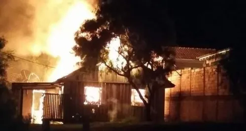 Uma casa ficou completamente destruída após incêndio na madrugada de domingo (16), em Mauá da Serra. Não havia ninguém no imóvel no momento que os bombeiros chegaram no local.