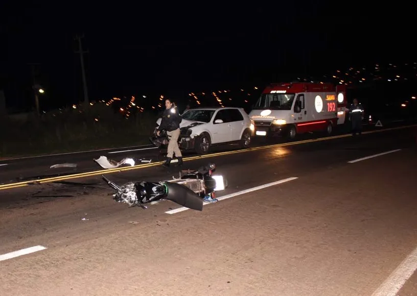 Um motociclista de 25 anos ficou ferido após acidente com um carro na noite de domingo (30) na BR 376 próximo ao trevo de acesso ao Parque de Exposições de Jandaia do Sul.