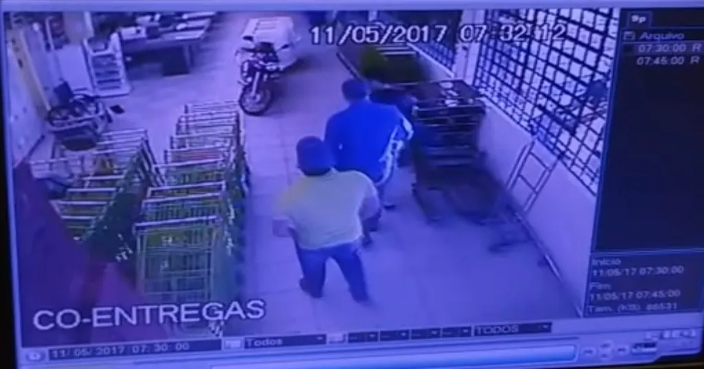 A polícia está em posse das imagens das câmeras de segurança do supermercado para tentar identificar e prender os bandidos.