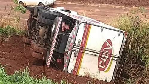 A picape que pertence a uma distribuidora de água e gás trafegava pela rodovia quando foi atingida na traseira pelo caminhão. Os dois veículos perderam o controle, caíram pela ribanceira e foram parar em meio à um matagal.