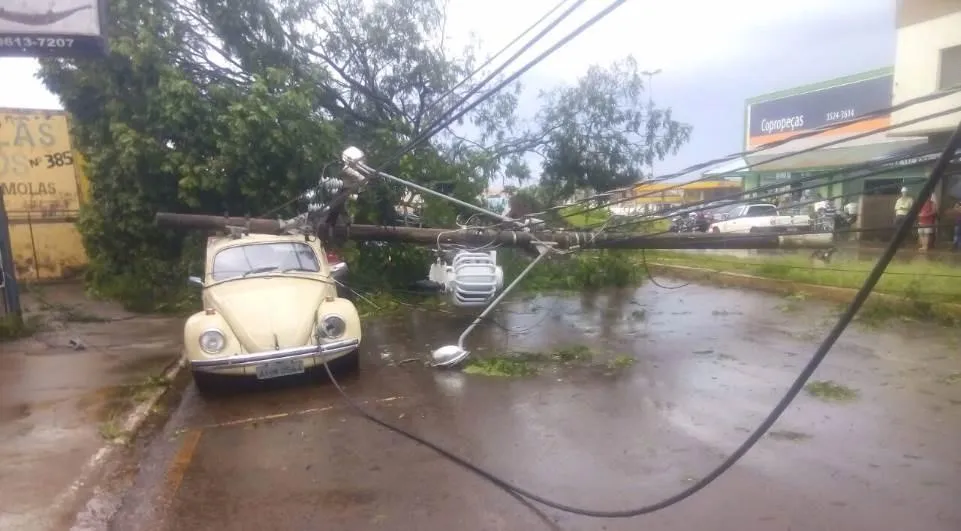 Temporal quebra 34 postes e deixa dezenas de imóveis destelhados