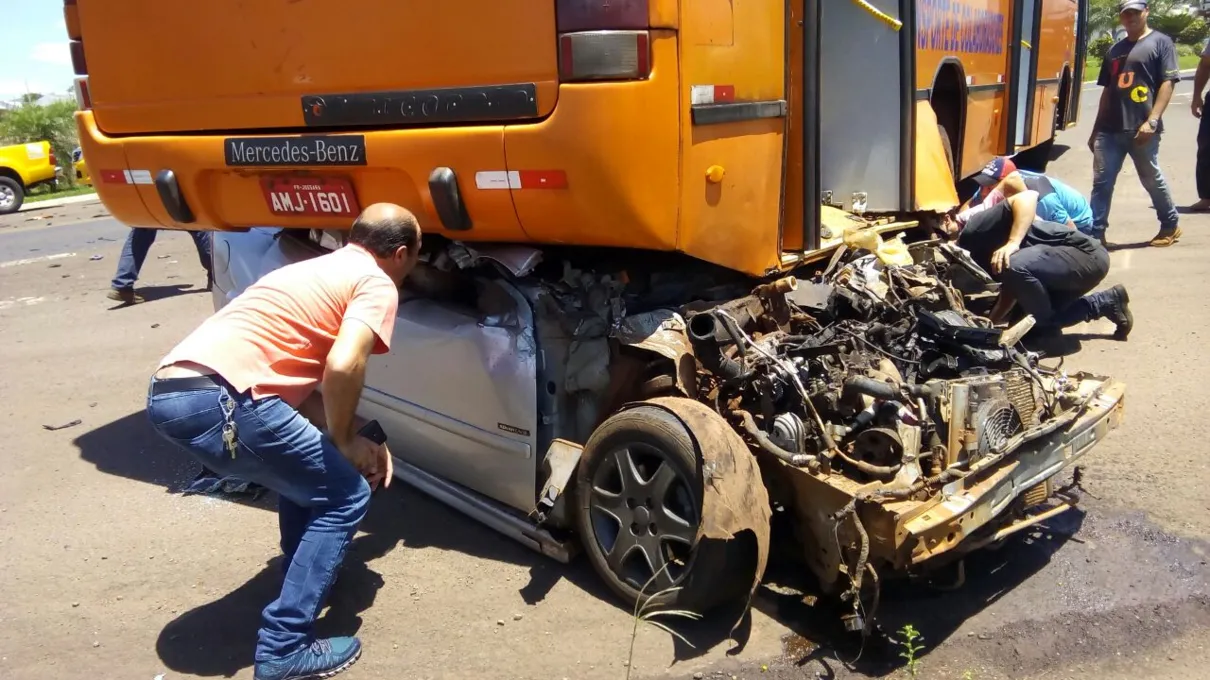 Um carro foi parar debaixo de um ônibus, na tarde desta terça-feira (7), na PR-323, no trevo de acesso a Doutor Camargo, (a 37 km de Maringá). Segundo informações da Polícia Rodoviária Estadual (PRE), um jovem de 21 anos morreu.