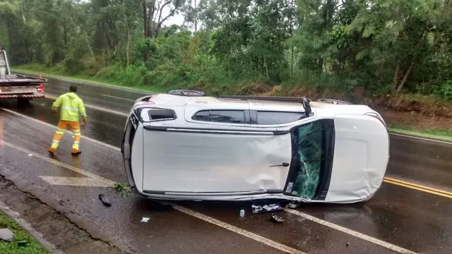 Já um veículo VW Gol da transportadora de valores Proforte trafegava pela PR 466 quando ficou desgovernado e saiu da rodovia, capotando e parando ao lado do barranco. O acidente aconteceu próximo a Vila Rural de Marumbi, na saída para Kaloré. Uma pessoa teve apenas escoriações.