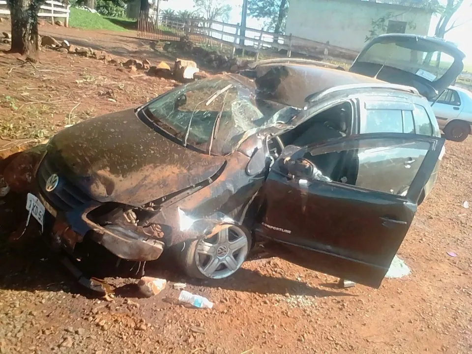 De acordo com a Polícia Rodoviária Estadual (PRE), uma família de Faxinal viajava no veículo VW Spacefox placas DXD-5570 (Faxinal) quando o carro ficou desgovernado e se chocou contra um barranco.