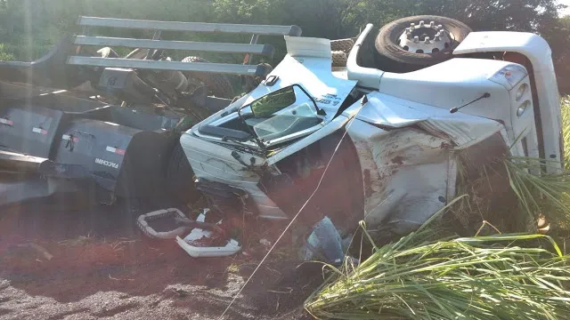Caminhão capota na "Descida do Sabino" em Novo Itacolomi
