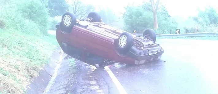 Um veículo capotou na manhã desta quinta-feira (7) na PR-466. No momento do acidente, chovia bastante no local. Apesar do susto, ninguém se feriu.