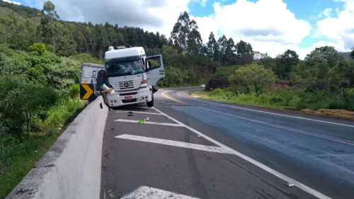 De acordo com informações da Polícia Rodoviária Federal (PRF), o compartimento de carga, um contêiner carregado com frango tombou. O acidente deixou o trânsito lento na região, porque a pista precisou ser interditada parcialmente.