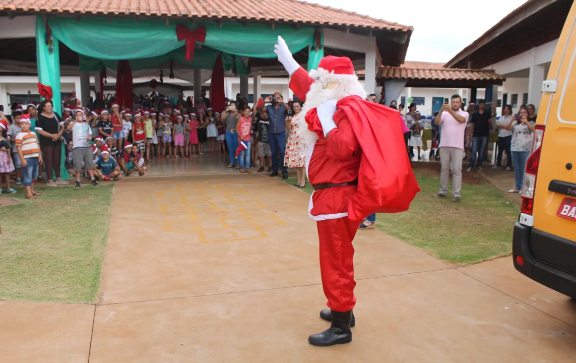 Acho que isso também serve como reflexão para a vida, porque, com pouco, dá para fazer uma criança feliz comentou Beto. Também presente no evento, a secretária de Educação de Tamarana, Maisa Nakata, relatou que o fim de ano tem sido caracterizado por celebrações empolgantes na rede municipal. Todo mundo se emocionou com as cartinhas ao Papai Noel dos Correios. Nas outras escolas, também estamos encerrando as aulas com muita alegria e festa.