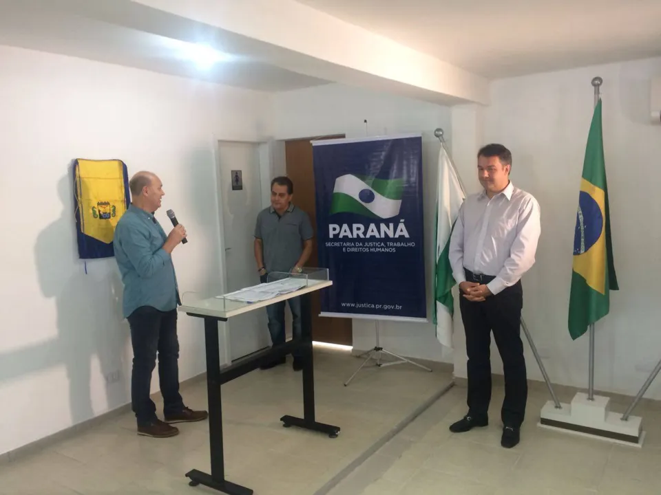 PRESENÇAS - Participaram do evento o prefeito de Guaratuba, Roberto Justos; o diretor do Departamento do Trabalho da Secretaria de Estado da Justiça, Trabalho e Direitos Humanos, Elcio Coltro; os representantes do Escritório Regional da Secretaria em Curitiba, Marcelo Dallazem e Paulo Meller e a arquiteta da Secretaria que colaborou para a nova agência, Norma Halluch.