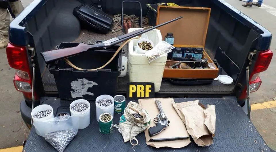 Os policiais rodoviários apreenderam três revolveres, três espingardas, mais de 3.000 pontas de chumbo de calibre 38,espoletas, grande quantidade de pólvora, uma máquina de recarga de munição, 61 papelotes de cocaína, uma motocicleta com placas falsas e um jabuti. Em uma das casas foi encontrado um carrinho de brinquedo caracterizado como uma viatura da PRF.