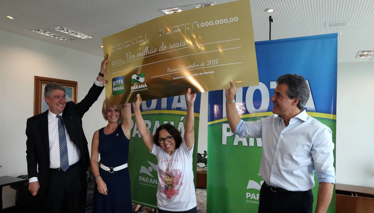 Governador entrega prêmio de R$ 1 milhão do Nota Paraná