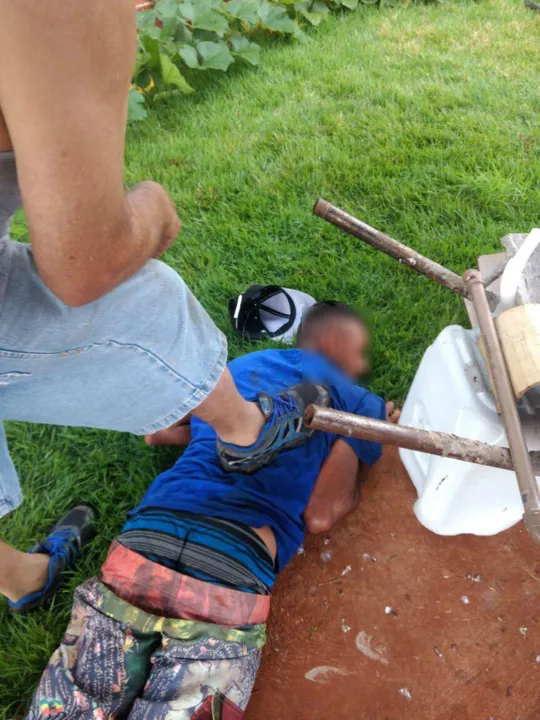 Após ser surpreendido, o suspeito correu, tentou pular o muro, mas foi contido pela mulher do vizinho.
