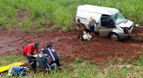 Em Bom Sucesso, uma van com placas de Maringá, capotou na PRC-369, rodovia de acesso a São Pedro do Ivaí. O veículo estava carregado com frios e era conduzido por um homem de 72 anos. O motorista disse chovia muito no momento do acidente. O veículo derrapou na pista molhada e capotou, por volta das 17 horas de terça.