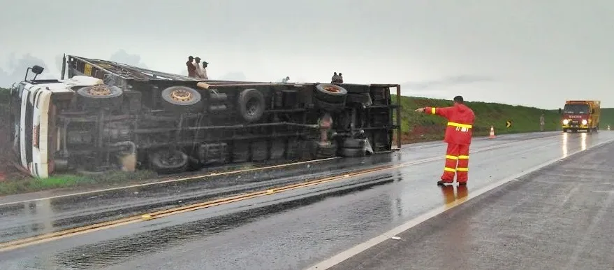 De acordo com a PRF, chovia no momento do acidente. O motorista sofreu ferimentos leves.