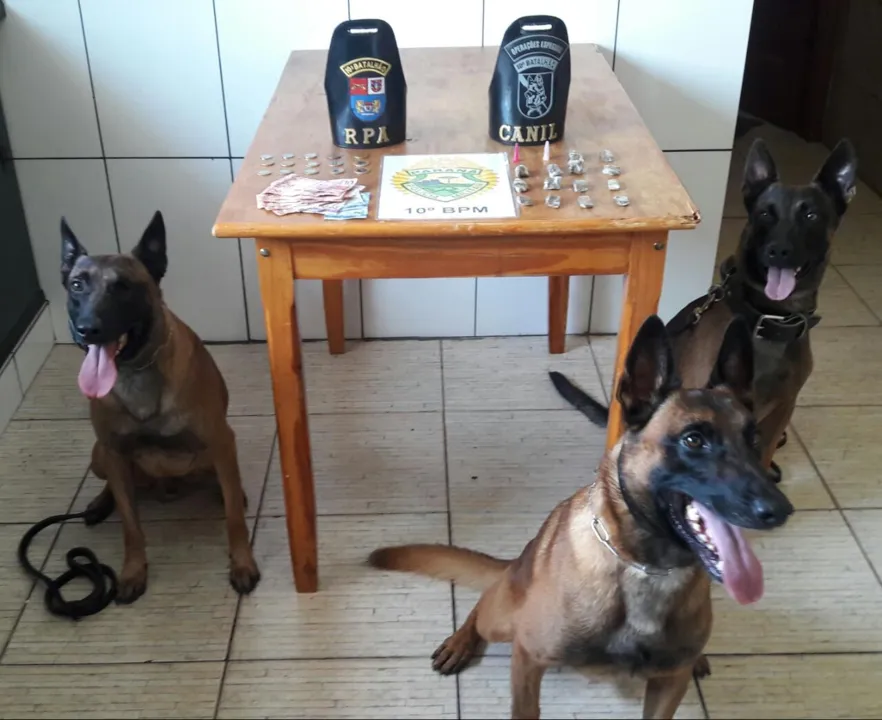Quatorze buchas de maconha foram apreendidas, por volta das 12 horas desta quinta-feira (25), na Rua Ivaí, em Califórnia. Os cães farejadores do 10º Batalhão de Polícia Militar (PM) encontraram a droga escondida dentro de uma caixa, em cima de um guarda-roupa.
