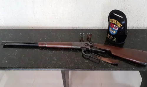 A arma, uma winchester e três munições foram apreendidas e encaminhadas à delegacia junto com a suspeita.