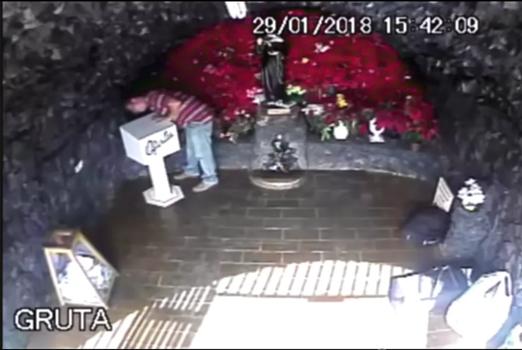Câmera flagra homem furtando doações no Santuário de Santa Rita de Cássia