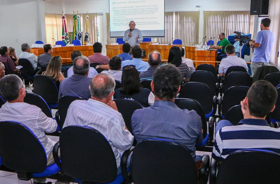 GESTÃO PÚBLICA - No encontro de prefeitos e secretários municipais da Amuvi o professor de administração da UFPR, Joel Souza e Silva ministrou uma palestra com o tema “Como melhorar a gestão pública do s municípios”. Silva, que já atuou no STF, TCE-PR, Secretaria de Administração do Paraná e Prefeitura de São Paulo, enumerou diversos conceitos que devem ser observados para alcançar bons resultados na gestão pública.