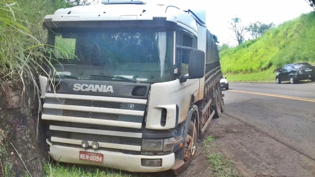 Um caminhão bateu contra um barranco na manhã desta segunda-feira (26), na PR-170, em trecho entre Novo Itacolomi e Borrazópolis.