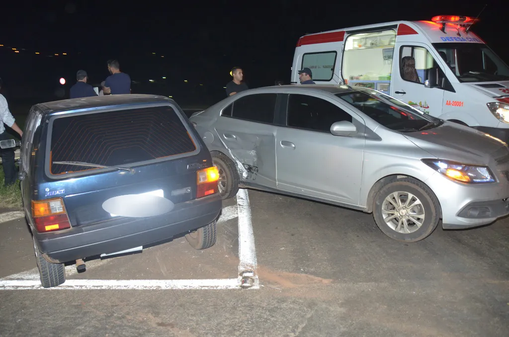 O impacto da colisão foi tão forte que o veículo Prisma acabou rodando e os dois veículos tiveram danos significativos.