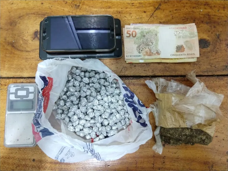 Um rapaz de 19 anos foi preso e um adolescente de 16 foi apreendido com 278 pedras de crack e 215 gramas de maconha, na tarde de terça-feira (10), em Mandaguari.