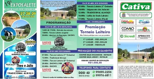 A tradicional Exposição Agropecuária de Barra Santa Salete (ExpoSalete), em Manoel Ribas, chega no final de semana a sua 19ª edição com uma programação que une competições e eventos técnicos e shows para comunidade.