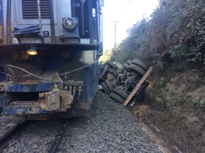 De acordo com a Polícia Militar (PM), um caminhão dirigido por Eudes dos Santos Maia, de 67 anos, foi atingido por uma locomotiva da empresa Rumo (ex-ALL).
