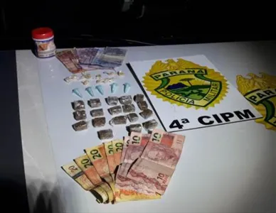 Com os suspeitos foram encontradas 11 pedras de crack, 5 pinos de cocaína, 18 porções de maconha e cerca de R$ 250,00 em dinheiro trocado.