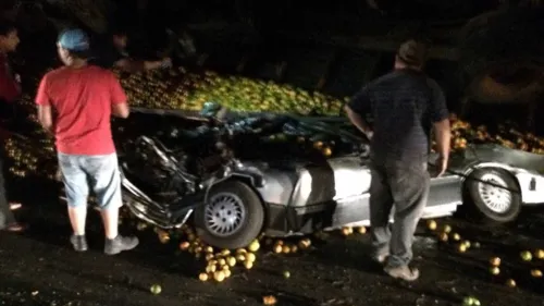 Família de cantora morre após ter carro esmagado por carga de laranja