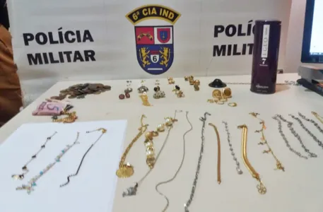Com o suspeito a PM encontrou um recipientes com joias diversas. Ao ser questionado sobre a procedência dos objetos, o jovem disse que teria comprado tudo por R$ 25 de um desconhecido.