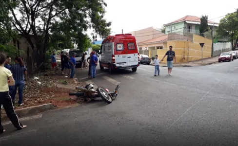 Um motociclista ficou ferido após acidente com um carro, por volta das 14 horas deste sábado (15), Rua Clementino Puppi, no Jardim Morumbi, em Jandaia do Sul.