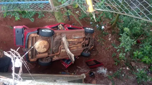 Carro despenca em ribanceira e três pessoas ficam feridas