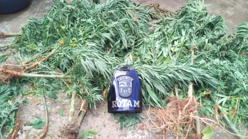 De acordo com a PM, a "roça de cannabis sativa" tinha 50 pés do entorpecente.