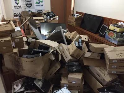Pai e filho suspeitos de estelionato são presos com mais de 500 equipamentos eletrônicos