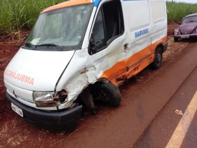 Pelo menos duas pessoas ficaram feridas, dentre elas uma gestante, após acidente entre uma ambulância e uma caminhonete, na tarde de sexta-feira (18), na PR-466, entre Jandaia do Sul e Marumbi.