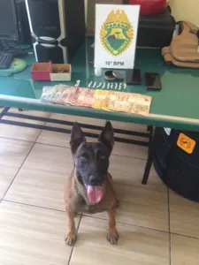 Segundo a PM, o suspeito foi abordado em um terreno baldio e com ele foram encontrados 11 pedras de crack e o dinheiro. O cão de faro Taz percorreu o terreno e encontrou uma sacola com mais 44 pedras de crack que estavam escondidas dentro de uma lata.