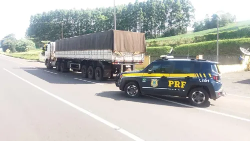 PRF apreende carreta com cigarros contrabandeados em Mauá da Serra