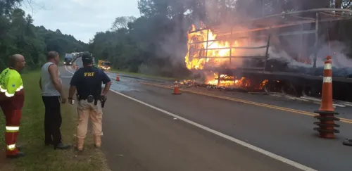 A carga de papel higiênico de um caminhão foi consumida pelo fogo na manhã desta terça-feira (23). O caso acontece na BR-376, em Ortigueira.