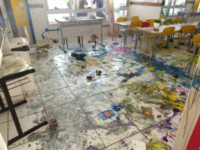Crianças invadem escola em Londrina e espalham tintas pelas salas de aula