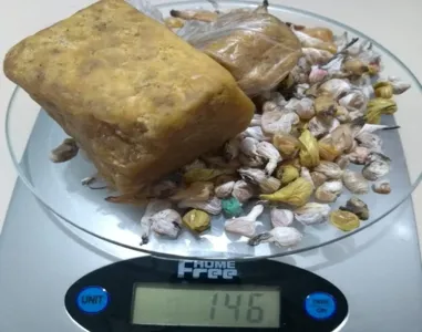 Segundo a polícia, com ele foram encontrados 259 gramas de maconha fracionados em 30 porções. O canil policial foi acionado e, com ajuda dos cães farejadores, foram localizados mais 20 gramas de maconha e 42 pedras de crack.