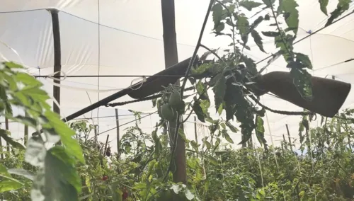 No dia dos fatos, as equipes foram até a casa, localizada na Rua Bufadeira da Fonte, porém não encontraram a arma nem o homem. O suspeito foi localizado e contido por populares antes de ser detido e encaminhado à delegacia. Após buscas na propriedade, os policiais encontraram a espingarda dentro de uma estufa.