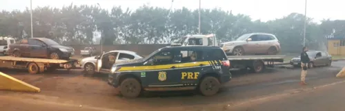 Segundo a PRF, os quatro carros trafegavam em comboio e em alta velocidade pela rodovia. Ao flagrarem a barreira policial, os motoristas começaram a fugir.