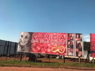 Homem pede namorada em casamento com mensagem em outdoor