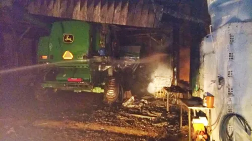 Incêndio atinge barracão com máquinas agrícolas, em Manoel Ribas