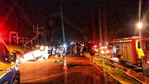 Segundo a Polícia Rodoviária Federal (PRF), o carro com o motorista de 42 anos capotou e cruzou a via marginal da rodovia e só parou após bater no poste.